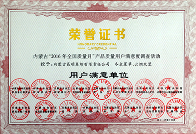 根據(jù)國家質(zhì)監(jiān)總局等43部委《關(guān)于開展2016年全國“質(zhì)量月”活動的通知》文件要求,內(nèi)蒙古自治區(qū)質(zhì)量協(xié)會組織開展了2016年全國“質(zhì)量月”用戶滿意調(diào)查活動。我公司“冬蟲夏草”、“云煙蓯蓉”系列的產(chǎn)品質(zhì)量、服務(wù)質(zhì)量及公司形象等項(xiàng)目通過網(wǎng)絡(luò)評選,獲得了廣大用戶和消費(fèi)群體的認(rèn)可,滿意度得到了較高的評價,經(jīng)專家委員會評議后,決定授予我公司“用戶滿意單位”稱號。