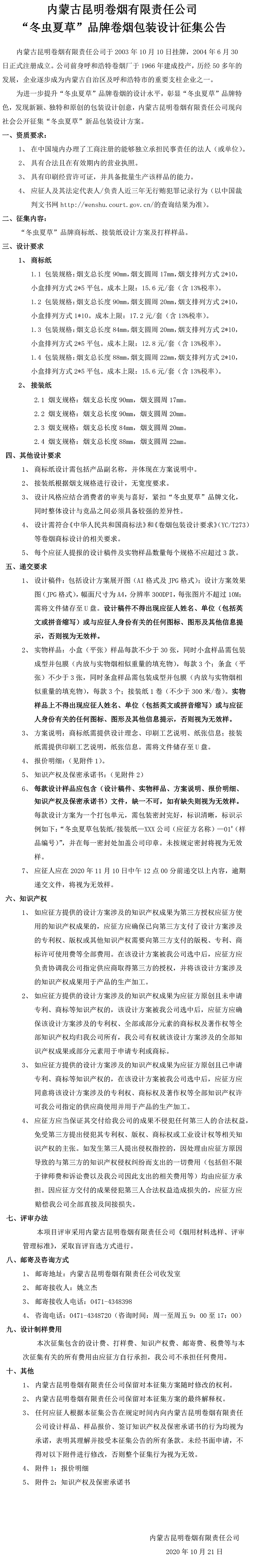 內(nèi)蒙古昆明卷煙有限責(zé)任公司“冬蟲(chóng)夏草”品牌卷煙包裝設(shè)計(jì)征集公告